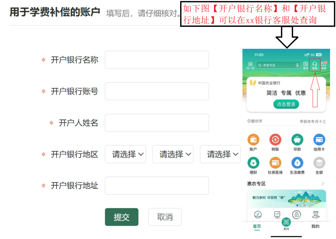 3)填寫賬戶信息時,信息必須準確;開戶人姓名必須為學生本人、銀行卡必須為一類卡。