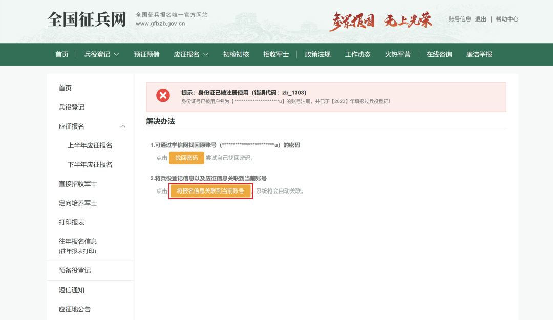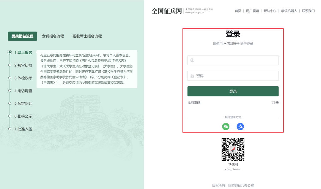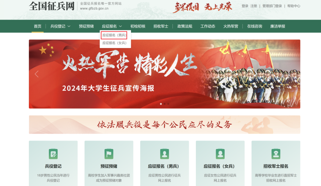 點擊報名網址:http://www.gfbzb.gov.cn/登錄全國征兵網報名平臺