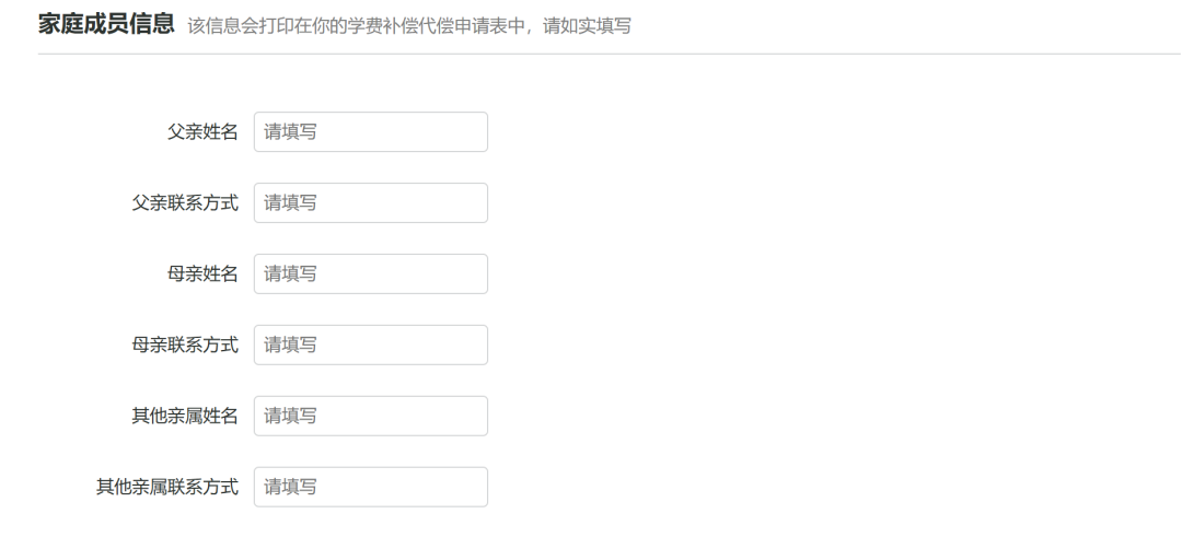 填寫學費補償代償、家庭成員信息時,注意如下問題:
