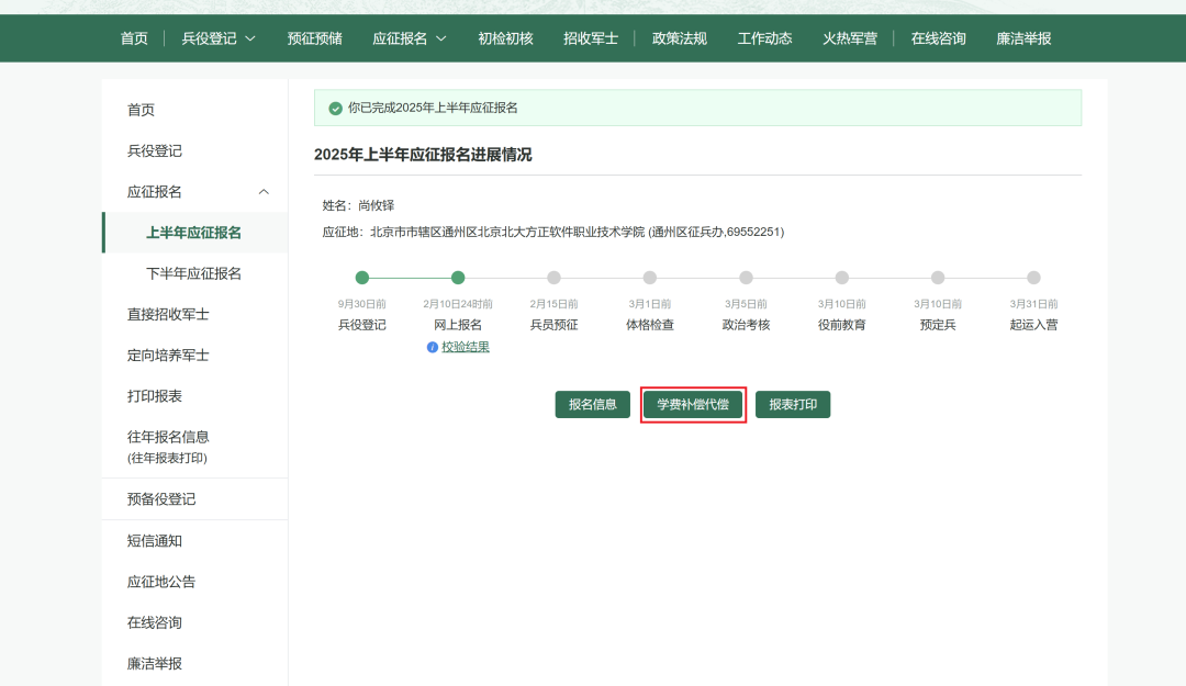 (2) “應征地”如果從學校走兵必須填寫“北京網絡職業學院”,如果從戶口所在地走兵據實填寫;
