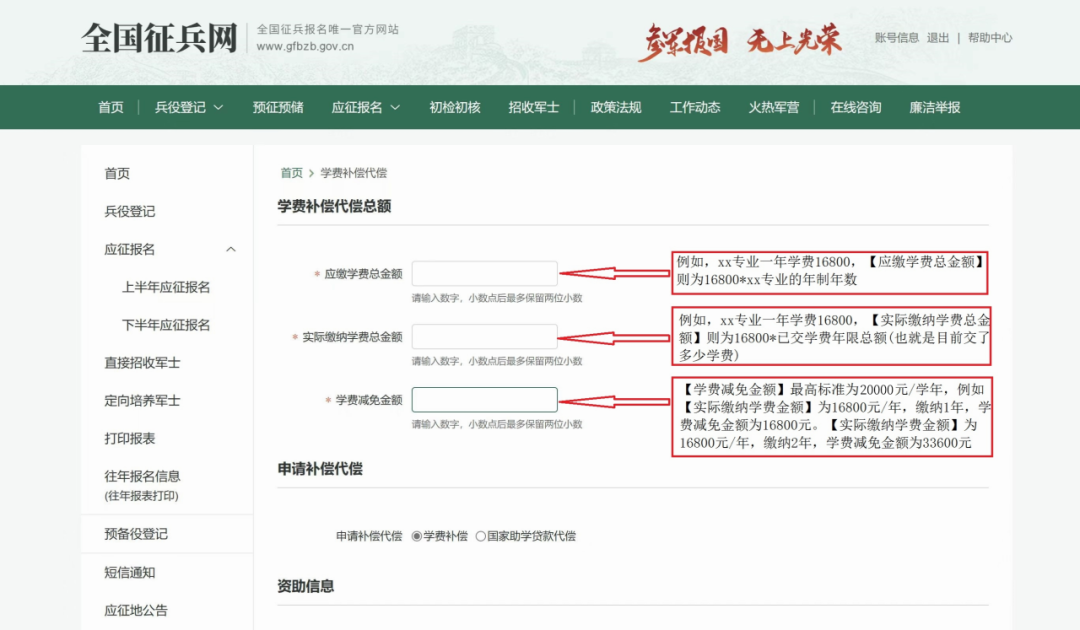 點擊網頁應征報名的【應征報名(男兵/女兵)】一欄,填寫完整后再進行應征報名